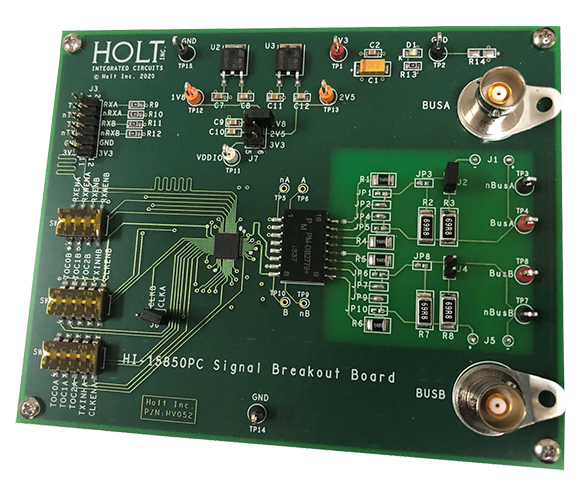 The ADK-15850 Demo Board provides a convenient way to evaluate the various unique features of Holt's HI-15850 transceiver. The HI-15850's features include 1.8V, 2.5V and 3.3V compatible digital I/O, making it easier to interface with a broad range of FPGAs. In addition, the device offers unique transmitter-induced tail-off compensation and optional receive output pulse extension.