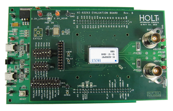 The ADK-62213 2-board assembly and C project reference design provides a ready-to-run evaluation platform demonstrating operation of Holt's HI-62213 BC/RT/MT terminal device. The HI-62213 is a direct pin compatible drop-in replacement for the Data Device Corporation (DDC®) Total-ACE® Family of MIL-STD-1553 Terminals. The board comes complete with Holt’s API runtime library, included as executable object code. The API Library provides standard functions for configuration, control, status, and interrupt processing, isolating the programmer from low-level register, RAM and discrete I/O operations. The software is compatible with existing competitor solutions and source code is available on request with a signed Software License Agreement.